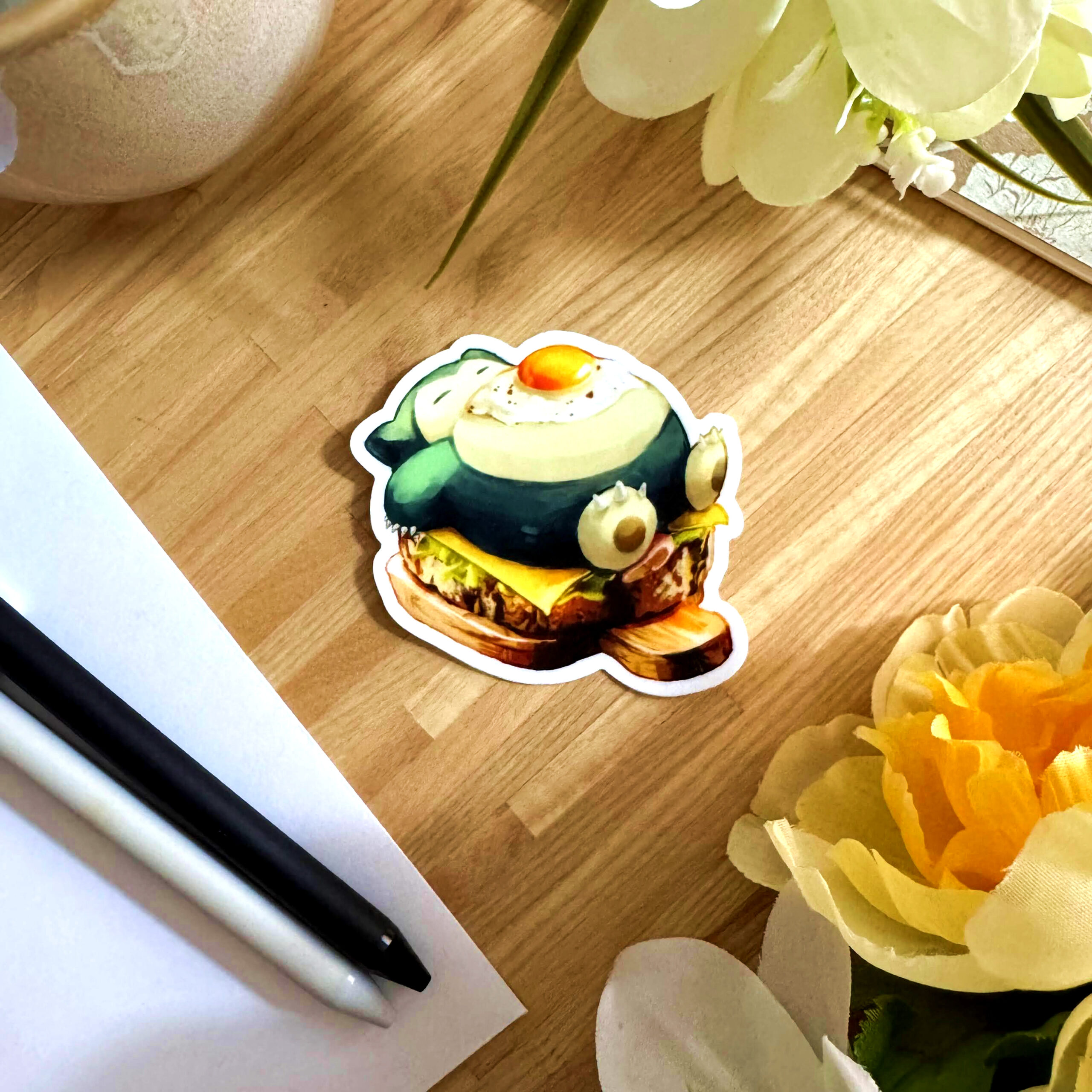 Decorate your laptop, water bottle, sticker book, or other items with this adorable Snorlax egg toast vinyl sticker!